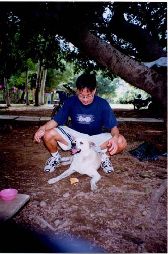Feeding his doggy roommate (10/1999)